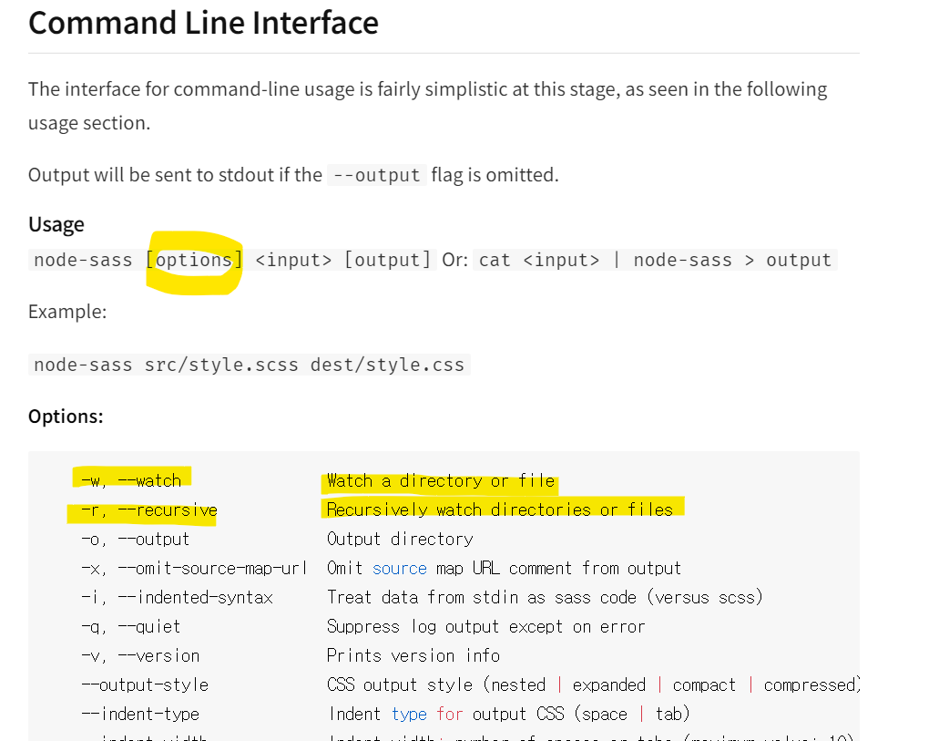 -w, --watch : 파일의 변화를 감지하여 작동하겟다는 뜻.