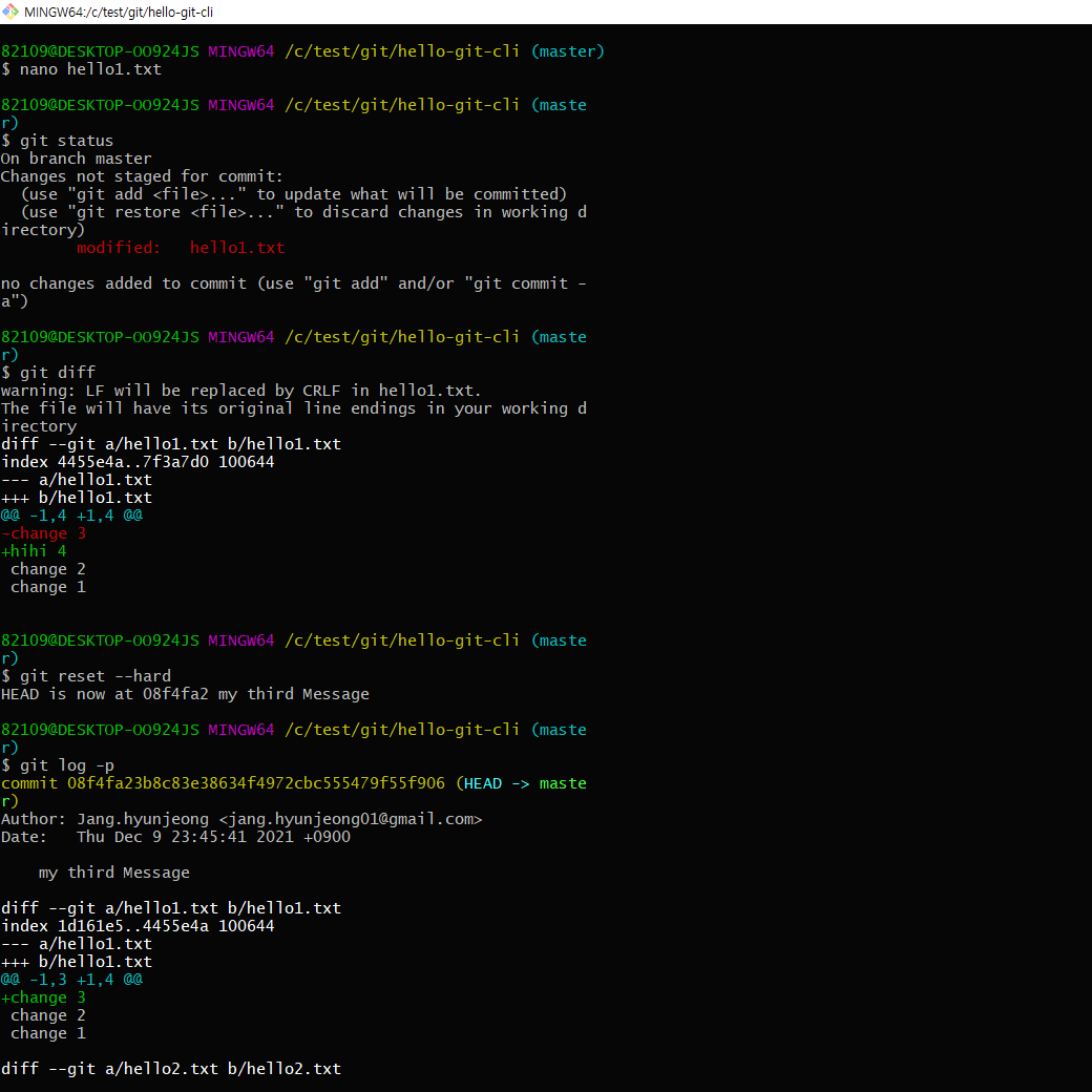 - 지금까지 변경사항을 지우고, 이전의 상태로 돌아간다.