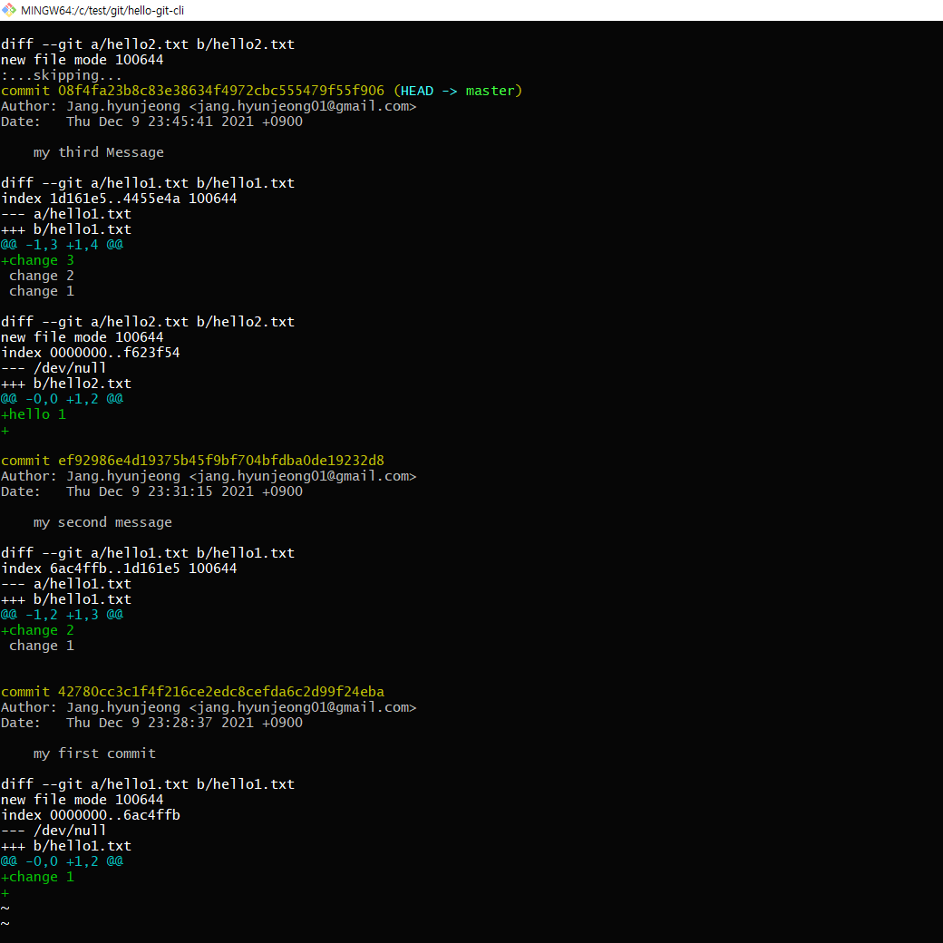 - 모든 커밋의 변경사항을 알려준다.