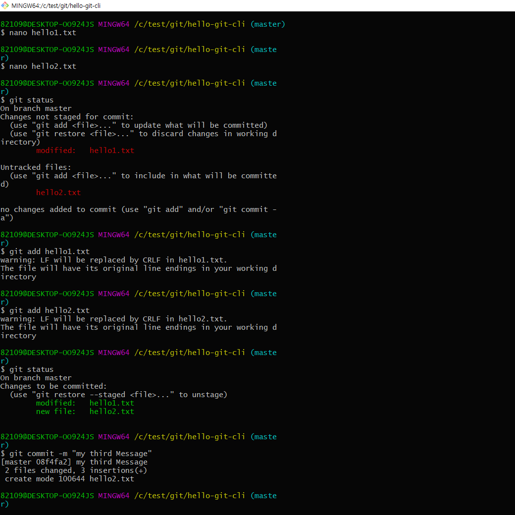4) git add hello1.txt