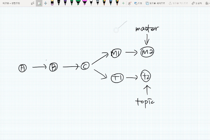 - 하려고 하는것 : master branch 를 topic branch 로 옮기겠다.