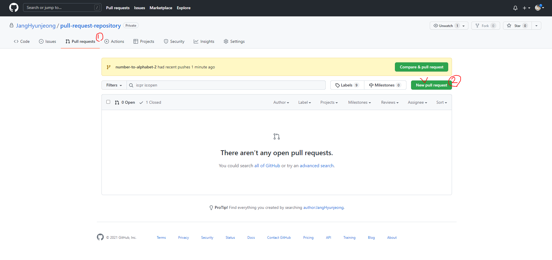 1. 내 repository 에서 pull-request 버튼 클릭
