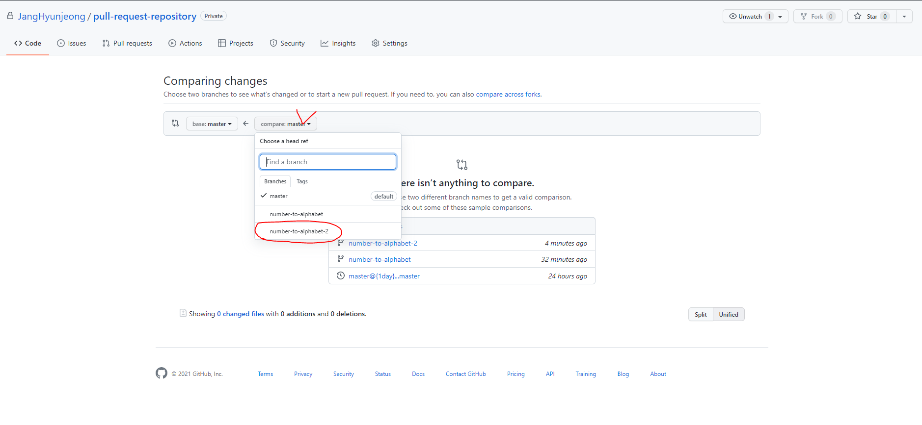 2. pull-request 하고자 하는 branch 를 선택한다.