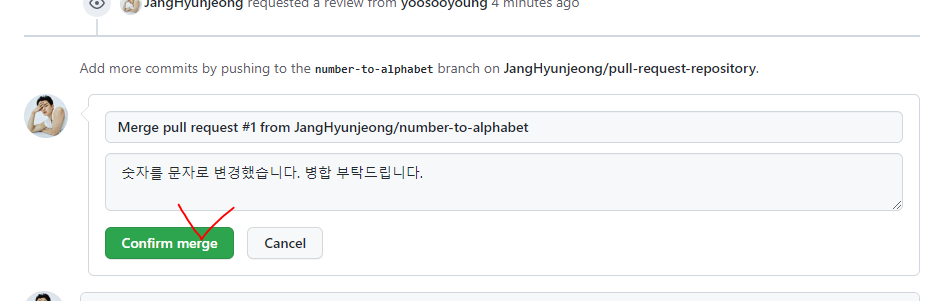 4. [confirm merge]클릭